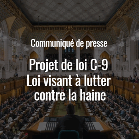 Le projet de loi C-9, Loi visant à lutter contre la haine, crée de nouvelles lois criminelles qui risquent plutôt de porter gravement et injustement atteinte aux libertés fondamentales protégées par la Charte canadienne des droits et libertés, incluant en criminalisant certaines manifestations pacifiques.