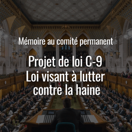 Le projet de loi C-9, Loi visant à lutter contre la haine, crée de nouvelles lois criminelles qui risquent plutôt de porter gravement et injustement atteinte aux libertés fondamentales protégées par la Charte canadienne des droits et libertés, incluant en criminalisant certaines manifestations pacifiques.