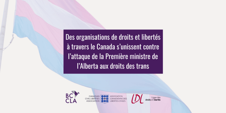 Ottawa, le 9 octobre 2025 — La BC Civil Liberties Association, l’Association canadienne des libertés civiles et la Ligue des droits et libertés ont publié conjointement la déclaration suivante en réponse à l’intention de l’Alberta d’utiliser la clause dérogatoire pour adopter trois lois anti-trans :